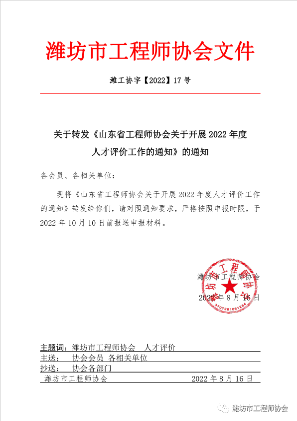 关于转发《山东省工程师协会关于开展2022年度人才评价工作的通知》的通知